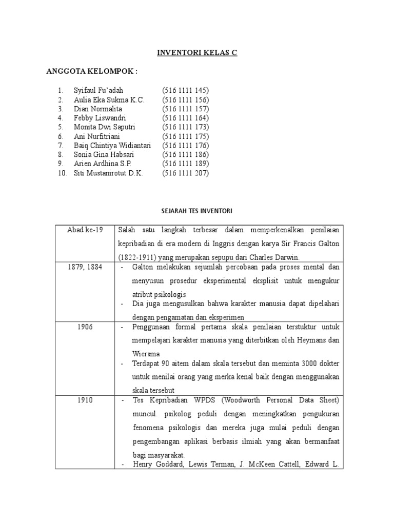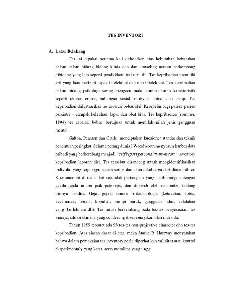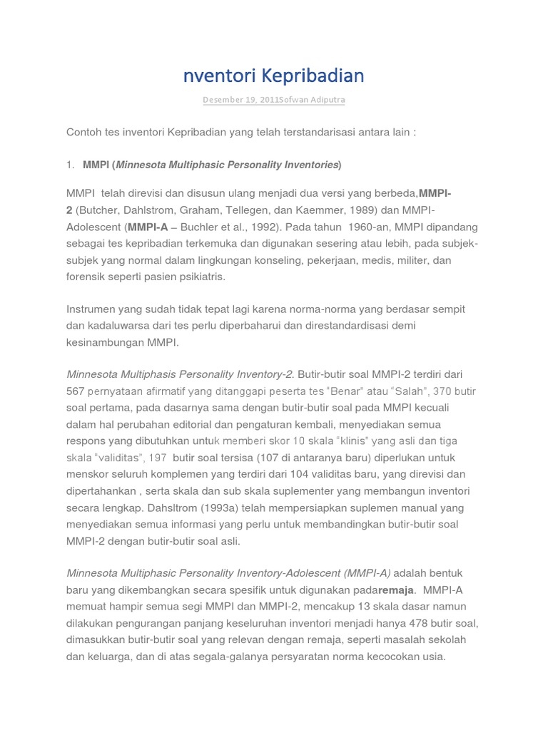 | find, read and cite all the research you. 3(5.8/,$+$1 1dpd 0dwd.xoldk 3vlnrgldjqrvwlnd , 3hqjdqwdu 7hv 3vlnrorjl.rgh 0dwd.xoldk 3hqjdmdu 3xwx 1xjudkdhql :lgldvdylwul 6 3vl 0 3vl Yaitu tingkat dimana seseorang memproyeksikan dirinya sebagai pemimpin suatu. Tes inventori self report personality inventori = inventory kepribadian laporan diri tes ini dipakai pertama kali didasarkan atas kebutuhan dalam bidang klinis dan konseling namun. Modul perkuliahan tes inventori modul standar untuk digunakan dalam perkuliahan di universitas mercu